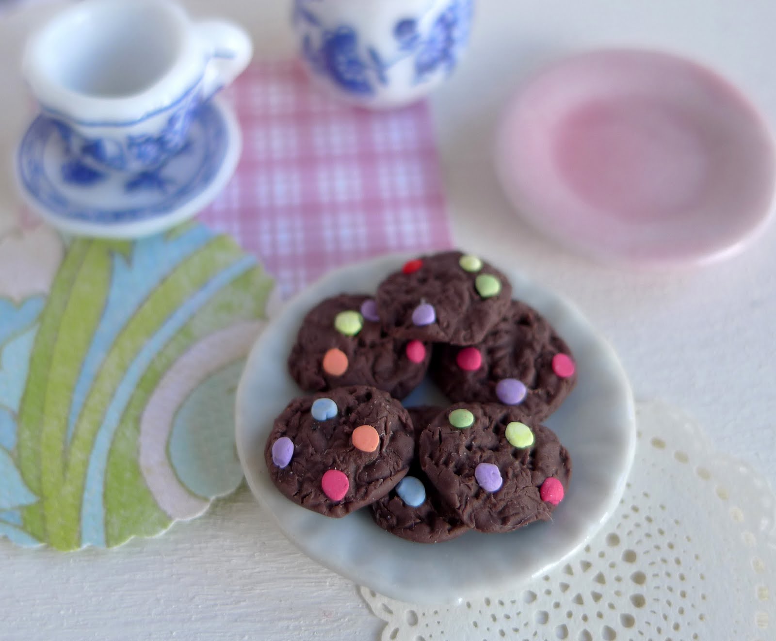 Here are some 1:12 scale chocolate smartie (candy) cookies.